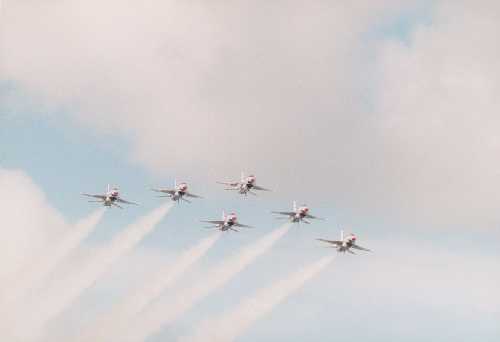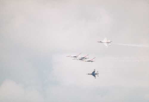 The team consists of a four plane "diamond" and (confusingly) two "solo" aircraft. |