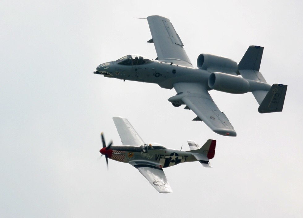 Coming up to the modern day, a United States Air Force A-10 Warthog display team put their aircraft through its impressive routines. |