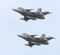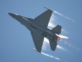 ...as well as examples of modern American military hardware, like the Air Force's F-16 Fighting Falcons and B-1B bomber... |