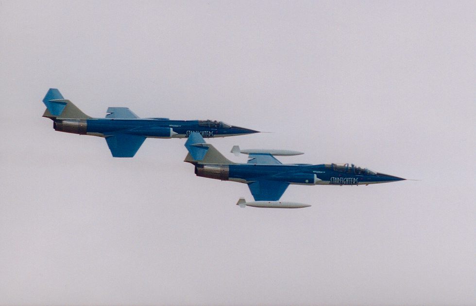 After an absence of 15 years, a one-day airshow in Prescott, Arizona was arranged by local enthusiasts. Perhaps reflecting a certain rustiness of organizational skills, they omitted to tell anyone what aircraft would be flying, apart from a few aerobatic planes and the rarely-seen high performance Cold War F-104 Starfighter jet. |