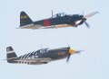 The organizers of the 2007 Riverside airshow again put on an excellent event, with a very solid turnout of aerobatic performers and warbirds, such as this F6F Hellcat formation with a Mitsubishi Zero courtesy of the Commemorative Air Force wing based at Camarillo. |
