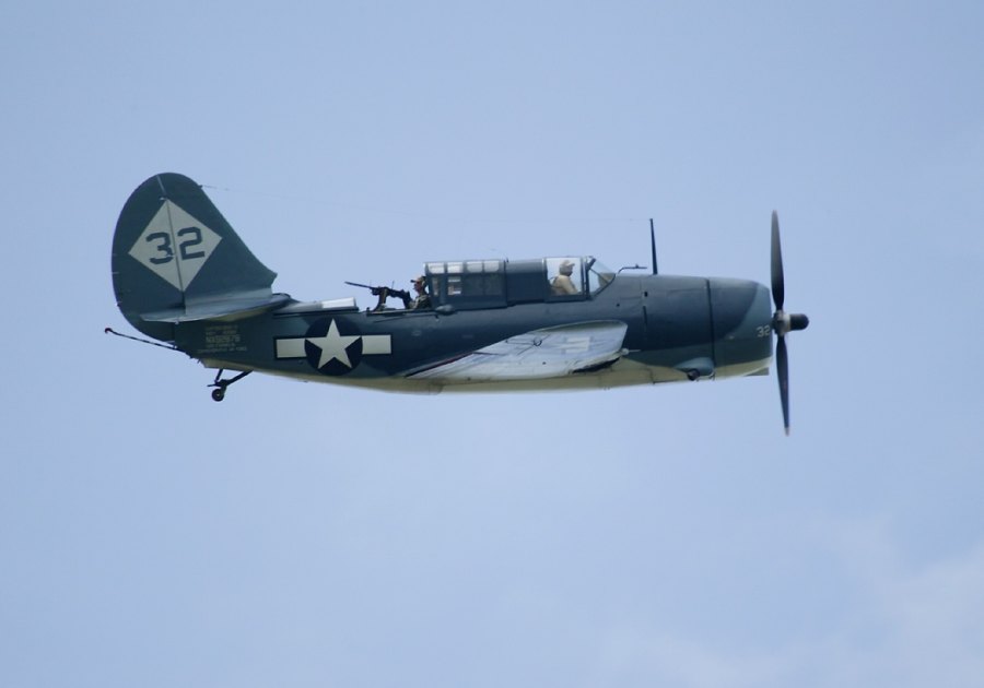 The 2007 CAF Midland airshow had many other rarely seen ex-military aircraft on display, too. The "Tora, Tora, Tora" display team flew a large array of replica Zero fighters, Kate torpedo bombers and Val dive bombers, but there was an authentic Zero at the show, together with original American naval types like the F4F Wildcat, F4U Corsair, F6F Hellcat, a pair of TBM Avengers and the rare SBD Dauntless and SB2C Helldiver. |