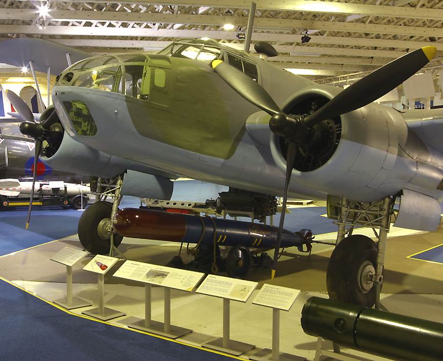 In 1935 the British air ministry issued two specifications requesting a torpedo bomber and a reconnaisance bomber, the latter to replace the Avro Anson. The Bristol company decided they could satisfy both requests with a single aircraft called the Beaufort, based on the Blenheim bomber. The Beaufort certainly bears a strong resemblance to its predecessor, particularly in the nose area, however it was quite a bit larger and heavier, and the roofline is quite different, in part to accomodate a larger crew of four men. |
