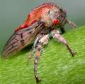 The insects of Indonesia are often weird and wonderful, like this small treehopper with absurdly shaped spikes on its head. |