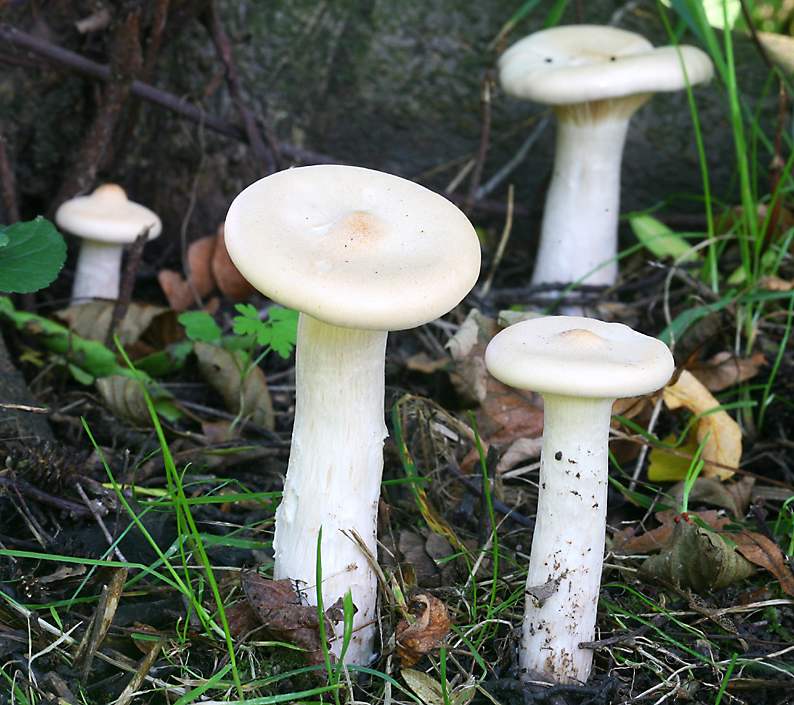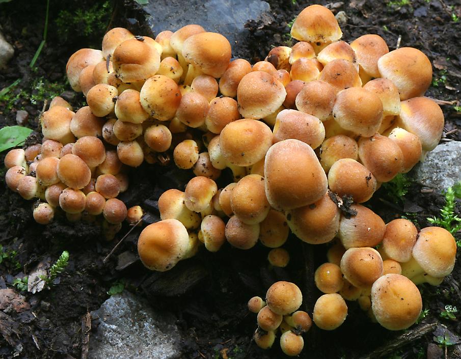 Not such a nice colour, but the parasol shape looks good! This little army of mushrooms is called "trooping crumble cap", as well as "fairies' bonnets". |