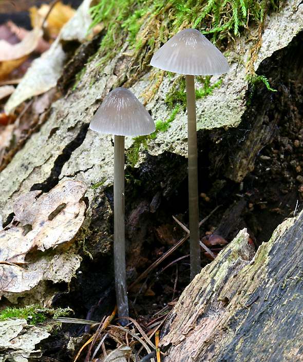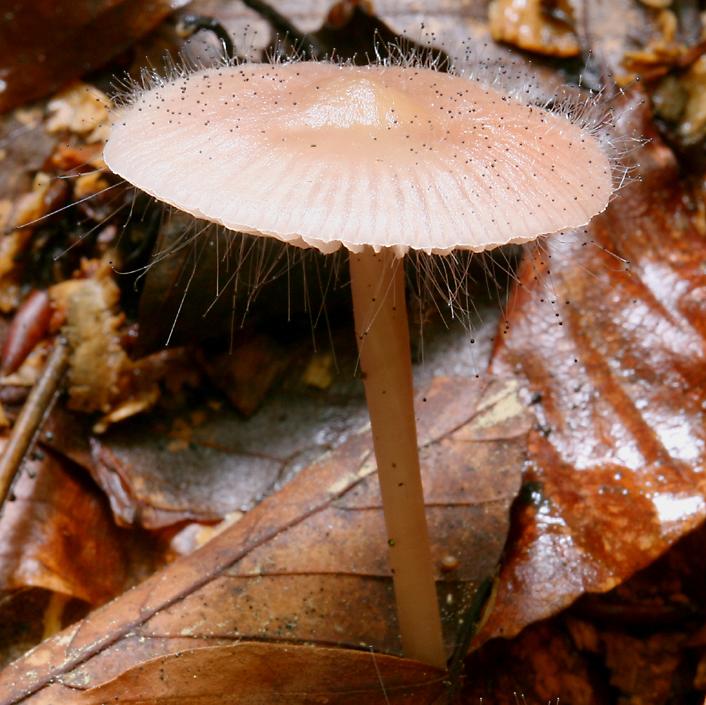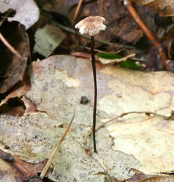 Here's a really tiny mushroom, growing directly out of a dead leaf! |