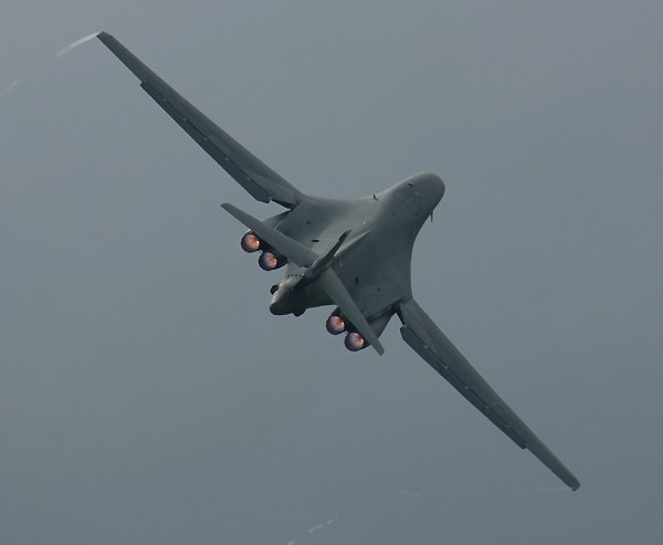 For every rule there's an appropriate time to break the rule. You can often break the "don't shoot from behind" rule when the plane is employing afterburners, as with the B-1 bomber near the bottom of this page. And sometimes a photo from very near a six o'clock angle can be incredibly atmospheric, particularly if the sun is in front of the aircraft and on the same side as you are. |