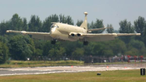 You might think that rain is the worst thing that can happen when you're photographing an airshow, but there's another hazard which is at least as likely to wreck your photos: haze. Common sources of haze are heat, humidity and air pollution, and another particular problem at airshows is heat haze caused by heat waves rising off the tarmac, as in this photograph of an RAF Nimrod patrol aircraft. |
