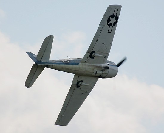 The easiest mistake to make when photographing an airshow is to underexpose your photos. This happens when you allow your camera to choose all of the exposure settings. Since planes are up in the sky, and the sky is very bright, the camera will choose an aperture which is too small, or a shutter speed which is too fast, and you end up with the sky properly exposed and the aircraft underexposed. There are several solutions to this problem: (1) Put the camera into spot metering mode so it takes more account of the aircraft and less of the sky. Theoretically this is a very good solution, but in practice it's often impossible to keep the center of the frame exactly on an aircraft, because it moves around so quickly. Often you don't even want the subject in the center of the frame - if two aircraft are flying in formation then the center of the frame might be empty sky, so you're back to the original problem where the camera is exposing the photo for the sky. Using spot metering also doesn't work too well if the aircraft has a color scheme with contrasting light and dark areas. (2) Put the camera into full manual mode, where you set both the shutter speed and the aperture. After you've set the shutter speed (see selecting the best shutter speed, below), you can then determine the appropriate aperture by pointing the camera at something of about the same darkness or brightness as the plane you want to photograph. Green grass is usually the equivalent of "18% grey" the industry standard "correct" exposure, so point the camera at the grass and use your camera's built-in light meter to adjust the aperture until the camera says you're at the right setting. There are several problems with using full manual mode. On a day with scattered clouds the light changes frequently, depending on whether the subject is in a sunny spot or a shady spot; when the subject is a fast-moving aircraft, this problem is especially bad. If you don't point towards grass which is in the same direction as the planes you're photographing, then the sun will be striking the grass and the planes from different angles, and so the aperture won't be correct for both of them. Even on a cloudless day the light changes through the course of the day, so you need to recalibrate your aperture periodically, however even this won't help completely, because the amount of light changes significantly as you pan with the aircraft from one part of the sky to another. Some planes are darker than grass and some are brighter, so you'll have to adjust your settings from plane to plane. Since the shutter speed you use probably depends on whether the subject is a jet or a propeller driven plane, you'll also need to make adjustments for that. (3) Put the camera into shutter priority mode, where you set the shutter speed and the camera selects the aperture. If you take this approach then you also need to use exposure compensation, otherwise you're no better off than when you started. Exposure compensation means telling the camera to let more light in than it normally would, or less light than it normally would. To cure the problem of underexposed aircraft, we need to tell the camera to let more light in than normal. Usually this means telling the camera to compensate by "+1 stop", which means allowing in twice the amount of light that the camera would otherwise have chosen (if you're not familiar with these concepts then read a description of aperture stops). If the aircraft you're photographing is white or silver then you might need to dial in minus half a stop of exposure compensation, but if it's very dark then you might want to add one and a half stops. Don't compensate much more than this, because you don't want a black plane and a silver plane to both turn out 18% grey - the black plane should look dark and the silver plane should look bright! |