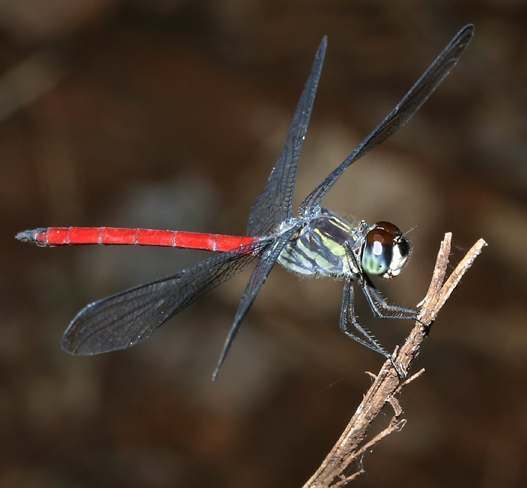 This critter also has an unusual combination of colors.   You'll find many dragonflies which are red and many which are green, but this is the first red and green one which I had ever seen.   I only saw one red swampdragon in Fiji, on the island of Vanua Levu, but it was kind enough to let me get several photos from different angles.