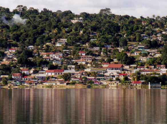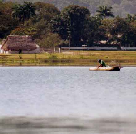 It's possible to take trips on the lake on small motor-driven ferries which wait for passengers at the North-Western end of Flores. Just out of sight to the right of the photo above is a small zoo, with birds, peccaries and local wild cats, including pumas and jaguars. And at the top of the photo, on the far shore of the lake, are the towns of San Andres and San Jose. The ferrymen are friendly, unhurried and eager to make some money, but don't expect much ability with English, it's virtually non-existent (the same is true of some of the restaurants, but the hotels and shops are a little better). But handsigns, a few scattered words of Spanish and some gringo dollars will get you around. |