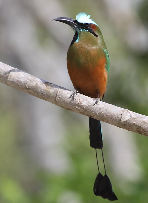 Bird watchers will find that there are plenty of birds inland, too, like this blue-crowned motmot that was at the Dos Ojos cenote. The blue-crowned motmot is fairly common around the Caribbean basin, and even down into South America. It's sometimes called the "clock bird" because of the way it twitches the two "rackets" at the ends of its tail backwards and forwards, like the pendulum of a clock. If you keep your eyes open then you can also see motmots at the Maya archaeological sites, like Chichen Itza and Kabah. |
