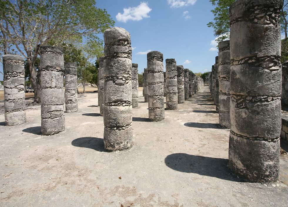 This is part of the Group of a Thousand Columns near the Temple of the Warriors at Chichen Itza. At one time these columns would have supported a roof made of wood and possibly thatch. |