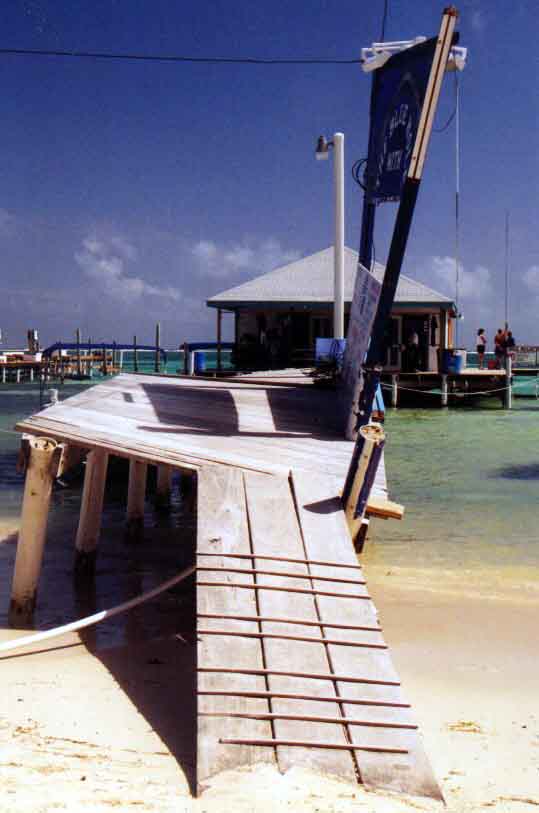 About the only damage Belize suffered was to the piers on the beaches (as well as coral damage in some areas, although the barrier reef kept this from being severe). I did actually get trapped by rough weather on Halfmoon Caye, but it wasn't because of hurricane Mitch, it was one of the dreaded "Northers". But it turned an overnight trip into a two day trip, and although the first day of the trip was in bright sunshine, we had to plough through 10 foot waves for about three hours to get there, and the same again on the way back. |